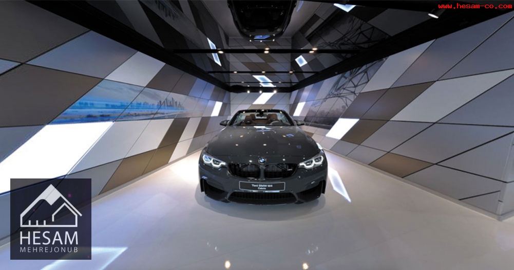• شوروم شرکت BMW و استفاده از سقف باریسول مشکی ساده